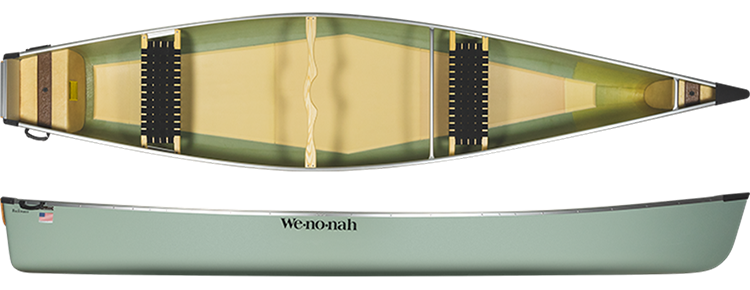 | Ultra-Light w/ Aramid | Ultra-light hulls are stiff and incredibly light. They are ideal for speed and distance paddling and for all people or conditions that demand the lightest gear. In our Ultra-light construction a structural-foam core and ribs are laminated into the hull and sides. We also add extra fabric layers to strengthen specific targeted areas. Aluminum plates are strategically laminated into the hull. Seats, footbraces, and all hardware is then riveted into these plates. This gives a very secure connection and eliminates rivet heads on the exterior. Aramid, the fiber used for aerospace, body armor and bulletproof vests, is amazingly light and strong. We've used it for more than 30 years to construct extremely light and tough canoes. Wenonah Canoe is the worlds largest maker of canoes using Aramid. 52 lbs |