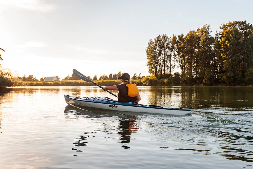 The Sky 120 blends the stability of a recreational kayak with the efficiency and tracking of a light touring design. At just 12 feet long and 41 pounds, it’s easy to transport, fun to paddle, and perfect for lakes, bays, and slow-moving rivers. With a roomy cockpit and sealed bulkheads fore and aft, the Sky 120 is a favorite for paddlers looking to level up without sacrificing comfort.