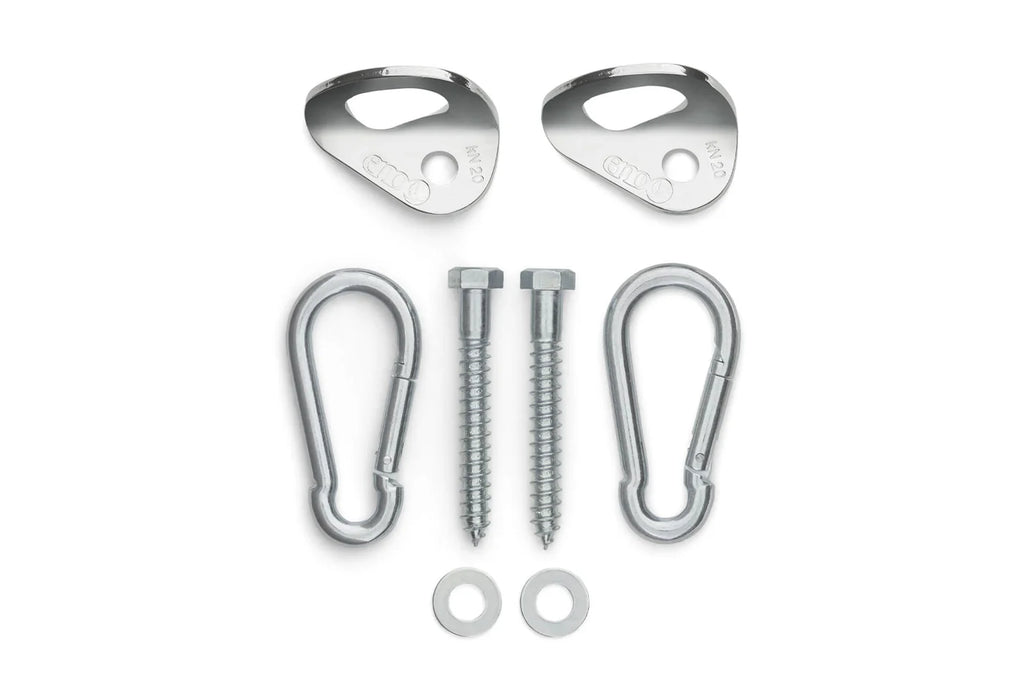 Falling is not an option, unless it's to sleep. The ENO Hammock Hanging Kit features Zinc Plated Steel hardware and is designed to support up to 400 pounds.
