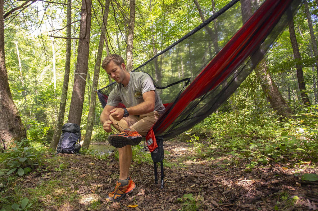 The Guardian SL slides down its integrated ridgeline for easy entry and exit or if you want to hammock net free.