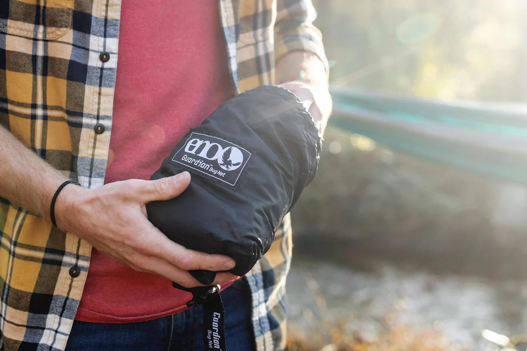 The ENO Guardian Bug Net comfortably surrounds you and your hammock with its breathable SkyWeave™ Mesh to create a bug-free refuge without cramping your style.