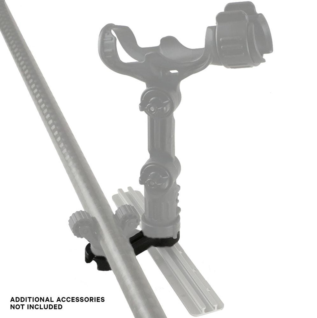 The YakAttack SideArm Track Mount was born out of using existing products to solve a rigging problem. Instead of using a standard 4” Extension Arm with a longer MightyBolt to offset a RotoGrip Paddle Holder, we created an off-the-shelf solution that accomplishes the task and then some. Any YakAttack track-mounted product that uses a single MightyBolt is compatible with the MightyMount at the end of the SideArm. You can also replace the knob of the SideArm with a LockNLoad accessory like a YakAttack Omega Rod Holder or PanFish Portrait Camera Mount. This feature provides the opportunity to mount two accessories from a single point. The RotoGrip Paddle Holder and ParkNPole RotoGrip are two commonly used accessories with the SideArm Track Mount.