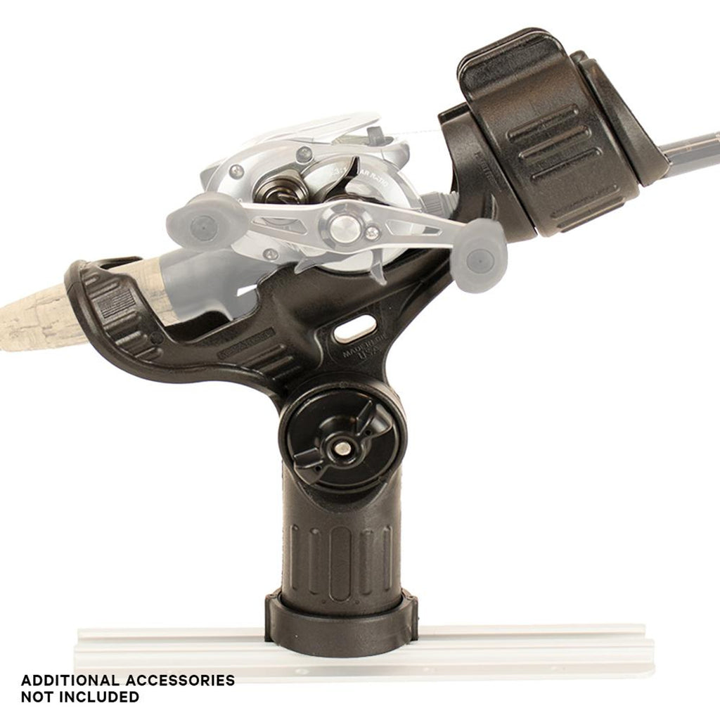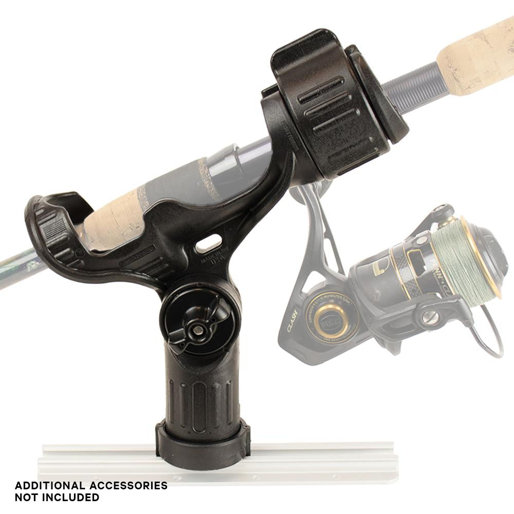 - In adjustment mode, the mount can be rotated in any direction, but cannot be removed, ensuring the rod holder is completely secure while making adjustments, even if a fish hits. Let go of the lever and you back in locked mode.