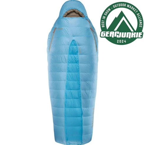 Ultra-comfy three-season backpacking sleeping bag with adjustable shape and warmth.