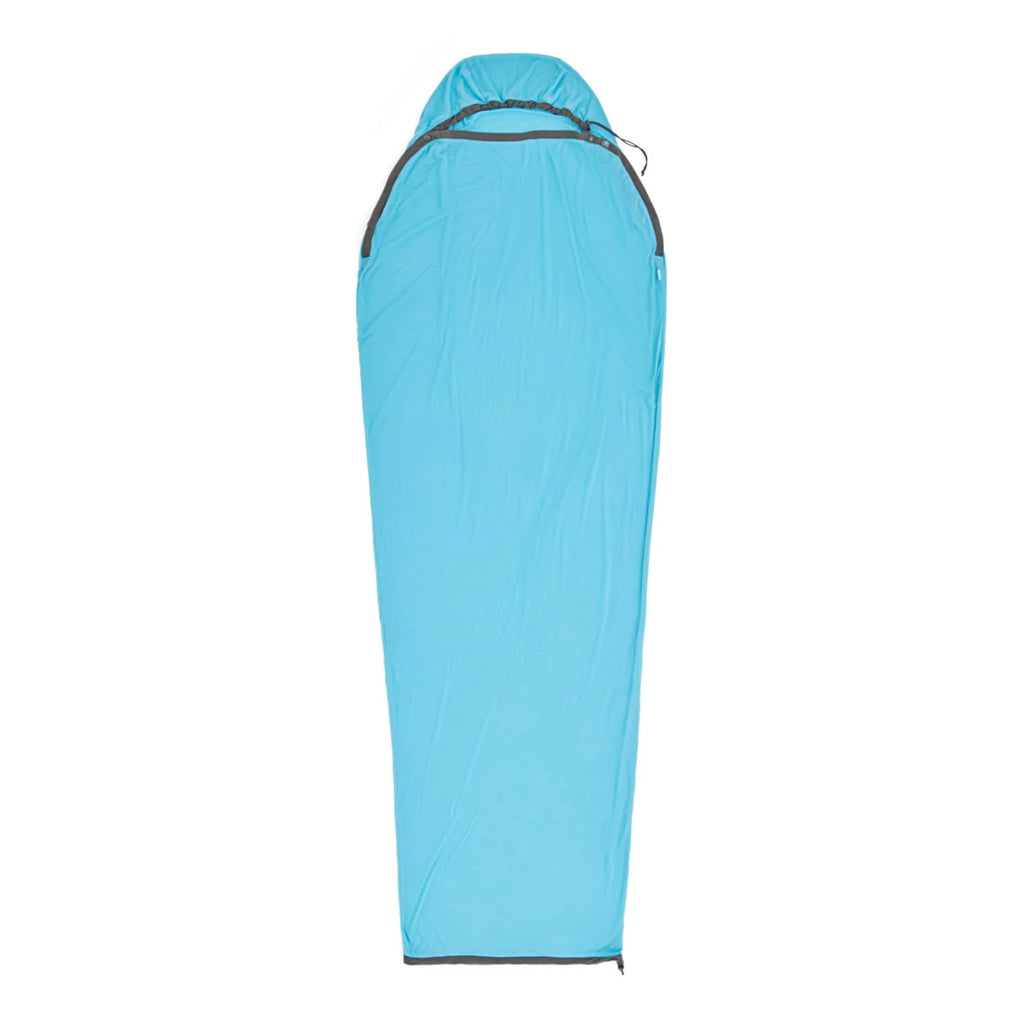 - Mummy version has a drawcord footbox for optimal comfort. The drawcord and shoulder openings integrate perfectly with the Free-Flow Zip system in select Sea to Summit sleeping bags. Open the base drawcord, and you can hitch the liner up and walk - perfect for bathroom breaks