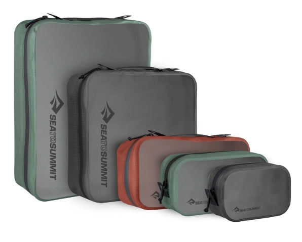 These lightweight and field-ready Hydraulic Packing Cubes are water-resistant and keep your gear dust-free, organized and protected in transit and on off-road adventures. A completely welded construction they use a TPU laminated 70D ripstop Nylon that provides a translucent window panel so you can easily view the contents inside. The welded, low profile Hypalon grab handles provide convenient handling or lashing no matter what adventure you're on.