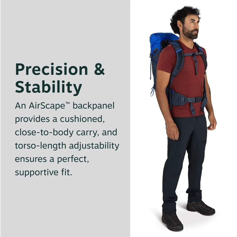 An AirScape™ backpanel provides cushioned, close-to-body carry, and torso-length adjustability ensures a perfect, supportive fit.